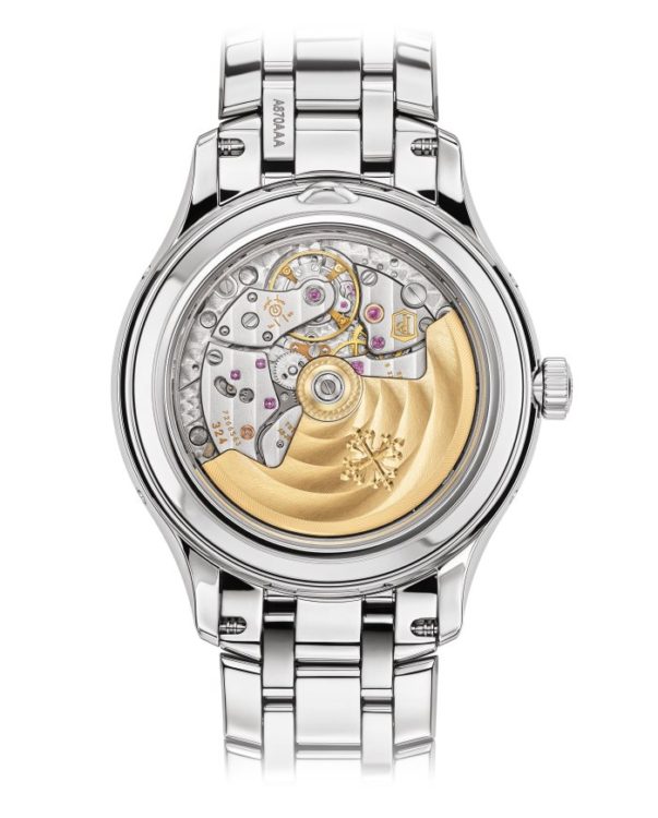 Annual Calendar. Day and month by hands. Date in an aperture. Moon phases. Sweep seconds.