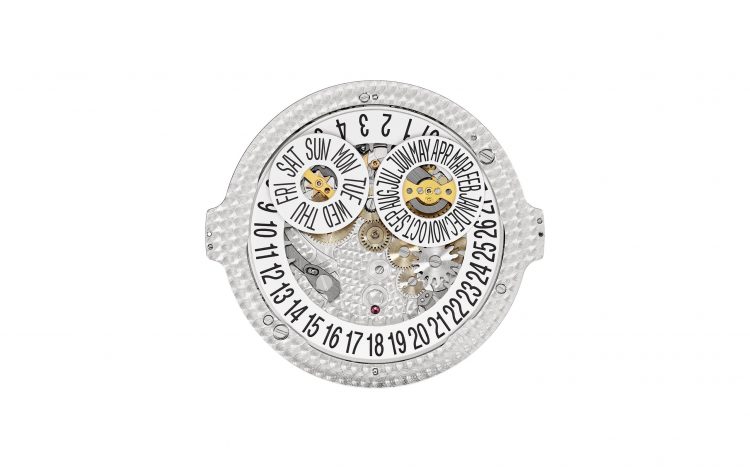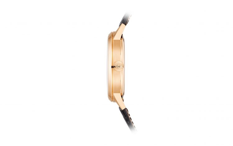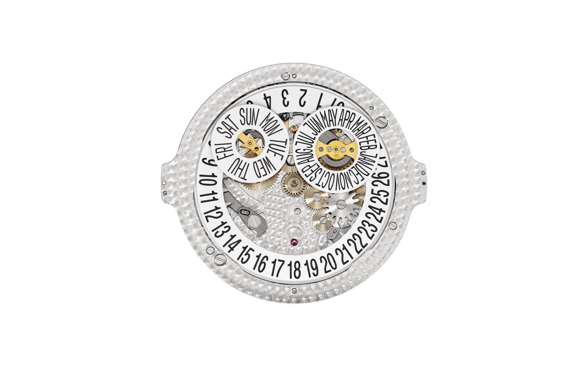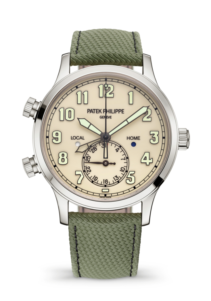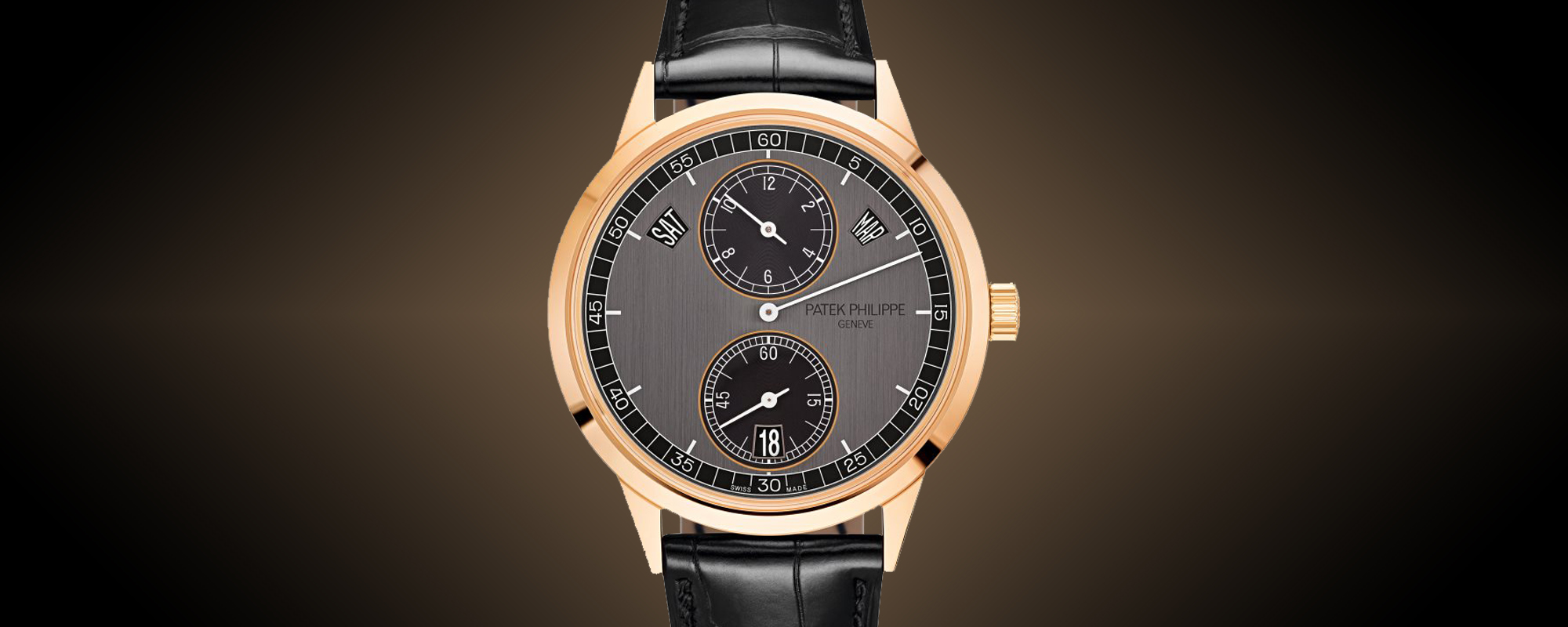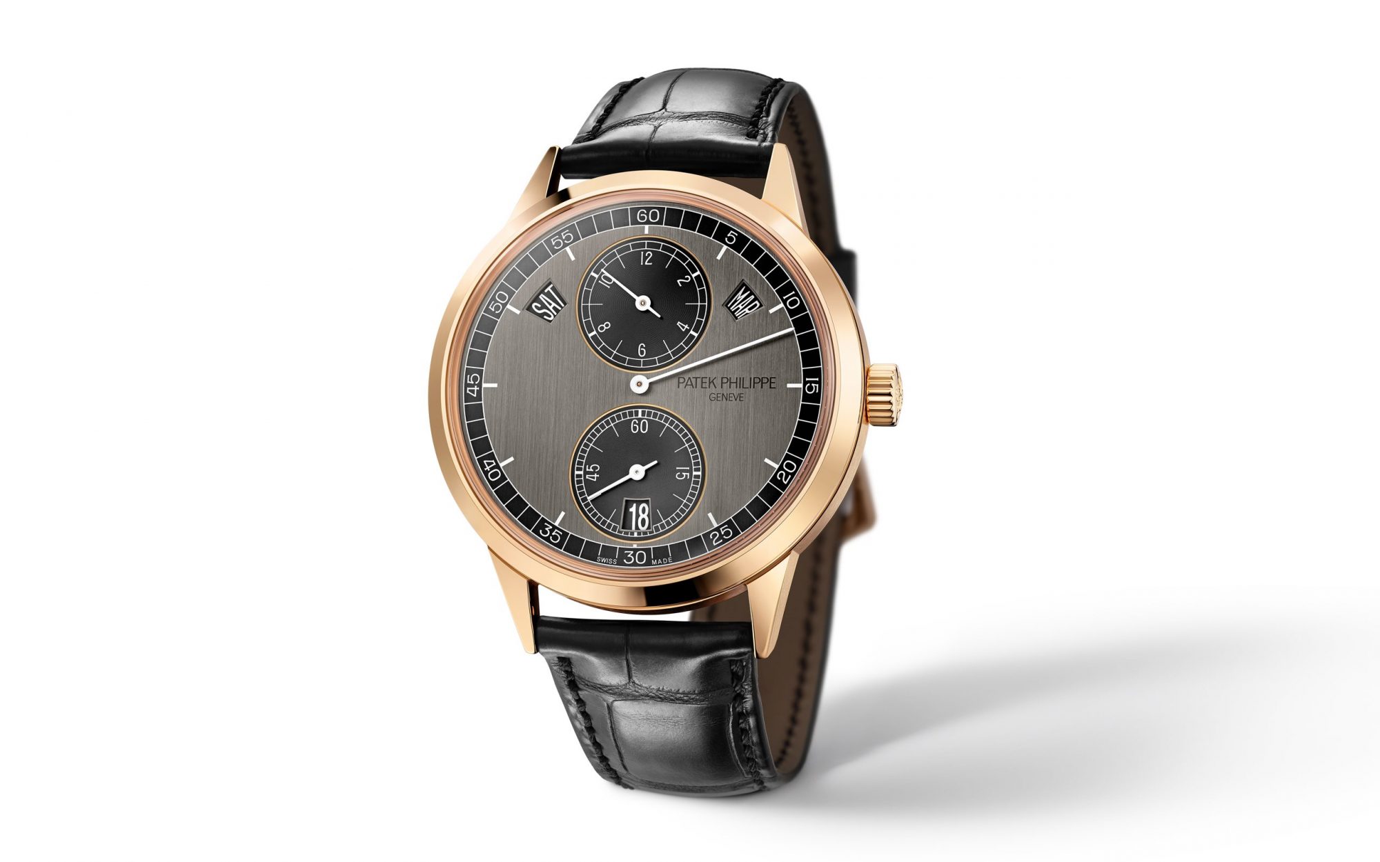 Regulator-style display: hour and seconds subdials, sweep minutes. Day, date, month in apertures.