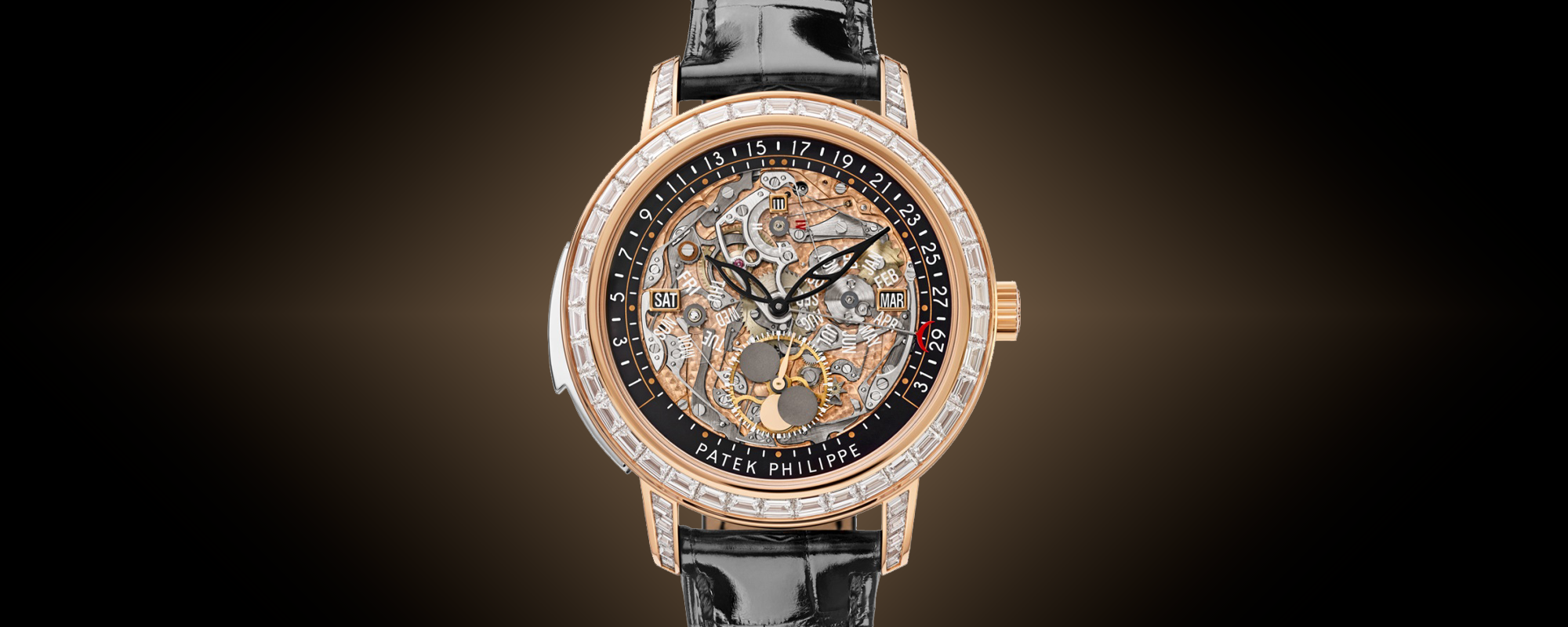 Minute repeater with classic gongs. Perpetual calendar with retrograde date hand. Day, month and leap year in apertures. Moon phases by hand. Small seconds.