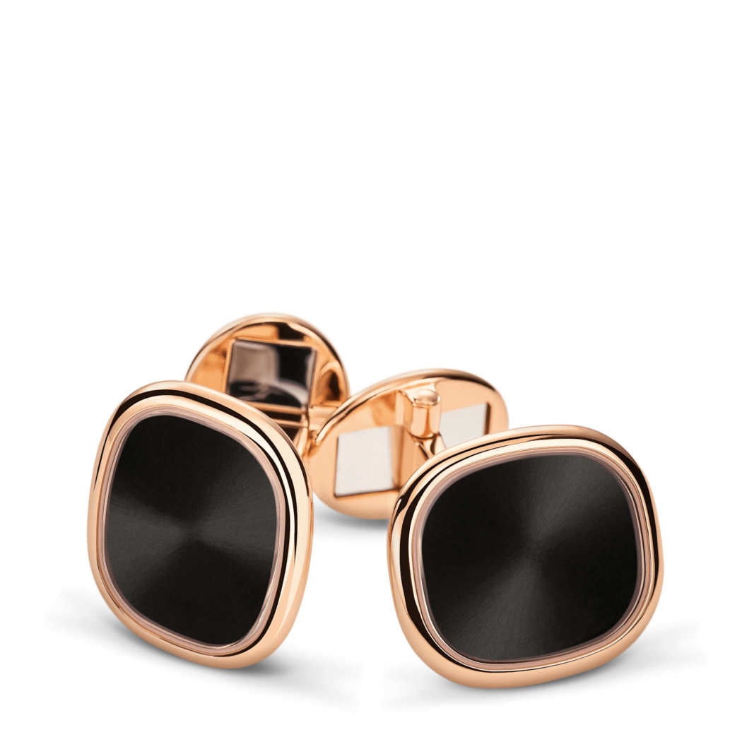 Sunburst ebony black, rose gold applied baton-style hour markers. 18K gold dial plate.