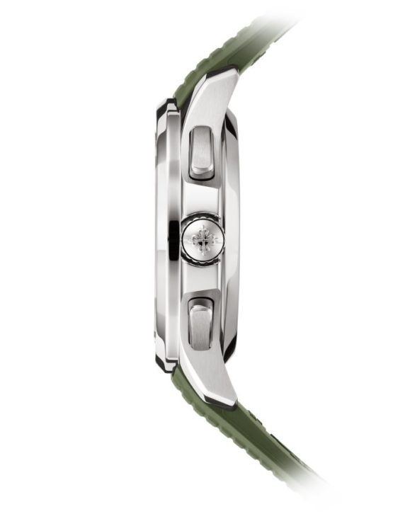 Khaki green, embossed with Aquanaut pattern, gold applied numerals with luminescent coating.